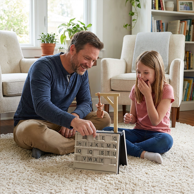 3D TACTILE EXPERIENCE - Experience the classic word-guessing game like never before. This version replaces pen and paper with physical letter tiles and body parts, making each guess more engaging and interactive for all players.