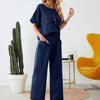 Package Included:1*Solid Color Casual Top & Drawstring Pants 2-Piece Set