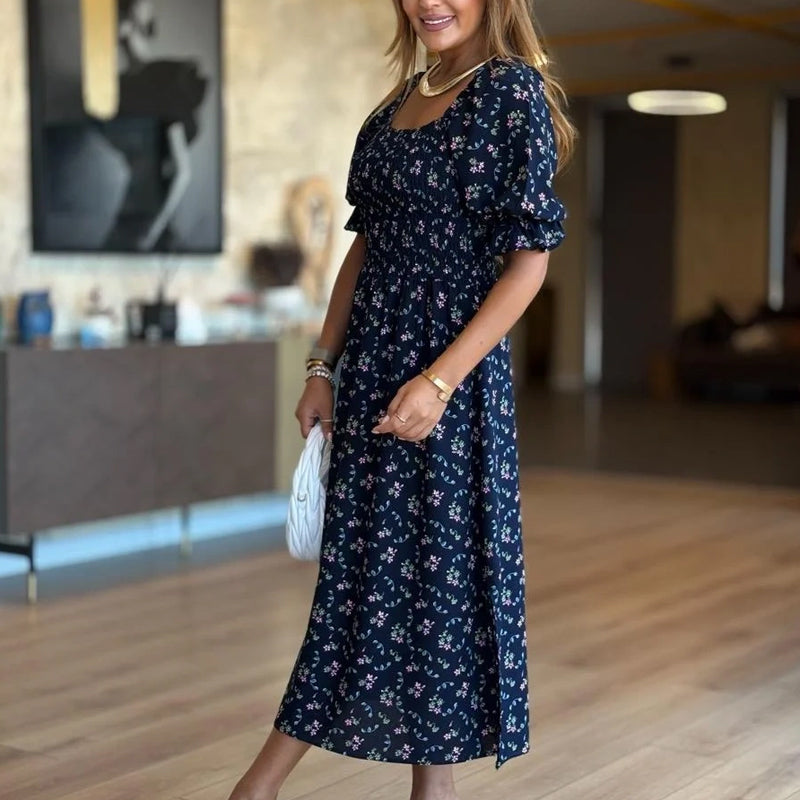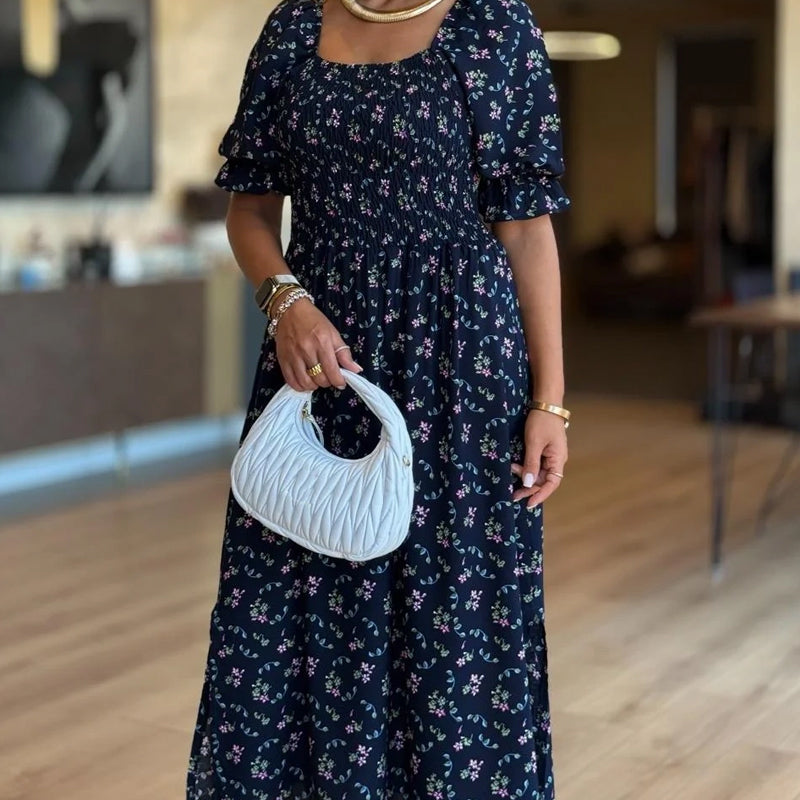 FLORAL PRINT CHARM – Infuse your look with seasonal energy. The vibrant floral pattern evokes the freshness of summer while maintaining timeless appeal. These prints add texture and color, making the dress visually dynamic and suitable for various occasions, from picnics and vacations to weekend brunches or casual date nights.