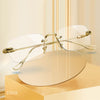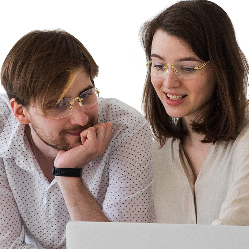 Introducing our anti-blue light rimless trimming presbyopic glasses, featuring a rimless design that keeps you looking professional and fashionable while working or reading. With vintage elegance and fashion-forward design, these glasses are suitable for any facial shape. Protect your eyes from harmful blue light while staying stylish.