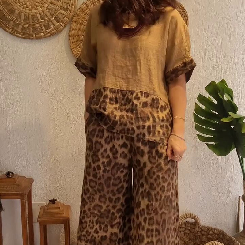 FASHION-FORWARD PATCHWORK DESIGN: The short sleeve top features a striking combination of leopard print and solid khaki panels, creating a unique visual appeal. This artistic patchwork craftsmanship ensures you stand out with contemporary style.