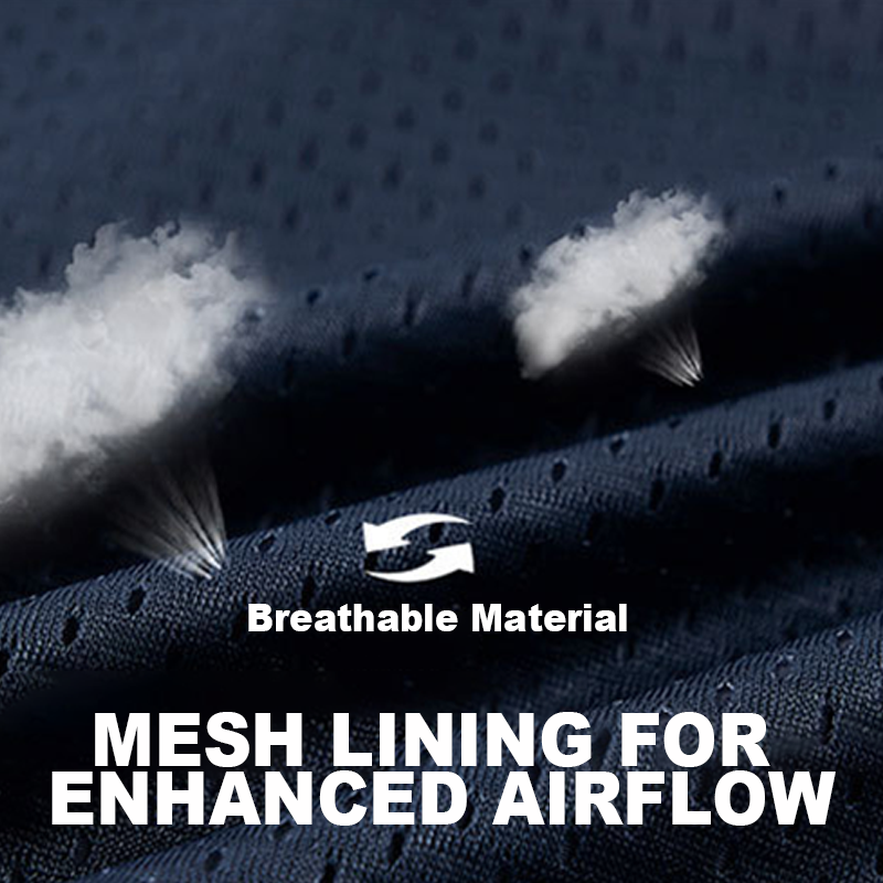 BREATHABLE MESH LINING WITH INNER POCKETS – The breathable mesh lining enhances ventilation, keeping your body temperature regulated and comfortable during physical activities. Featuring inner pockets, it allows for safe and easy storage of smaller essentials like your phone or wallet.