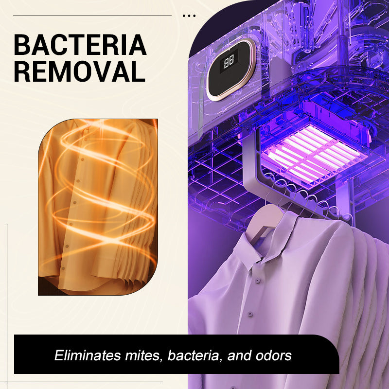 SANITIZING POWER – More than just drying, the unit helps maintain cleanliness. The hot air eliminates bacteria and dust mites, while built-in negative ion technology neutralizes odors. This ensures your clothes not only come out dry but also hygienically safe and smelling clean.