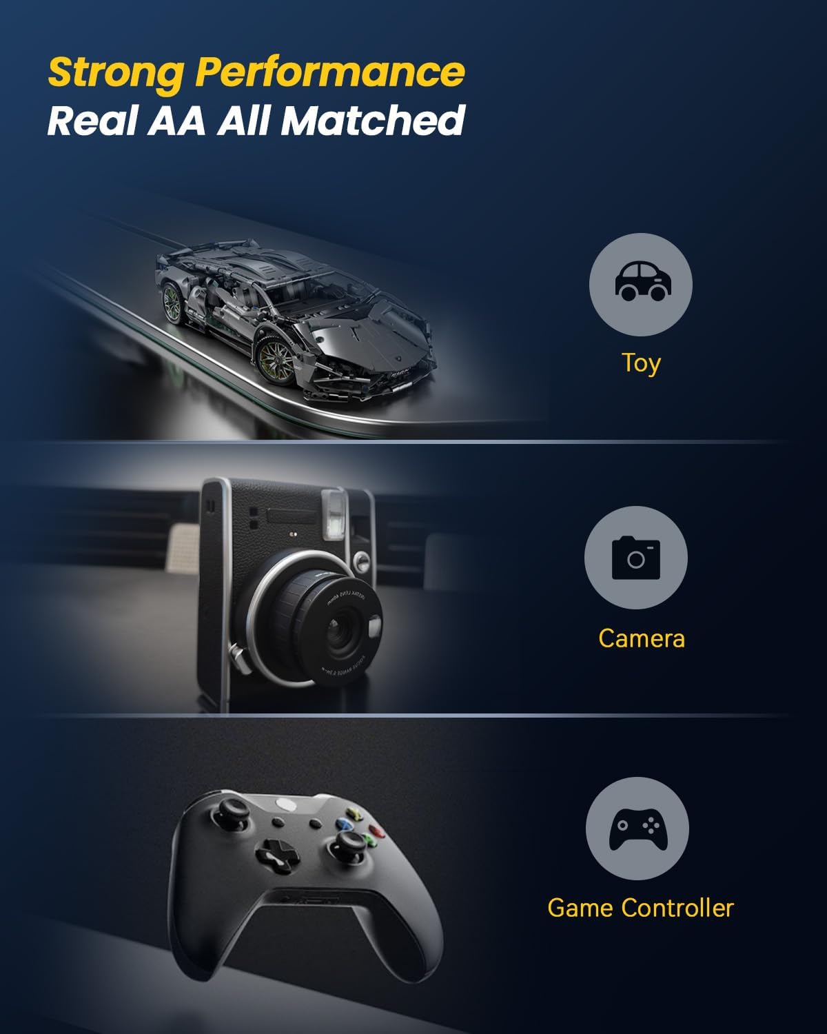【Smart LED Display】The LED light displays charging status. Flashing Green indicates charging, Static Green indicated fully charged, Red indicates error battery or temperature state. All AA/AAA Batteries can in 2.5 hours in Static Green fully charged state.