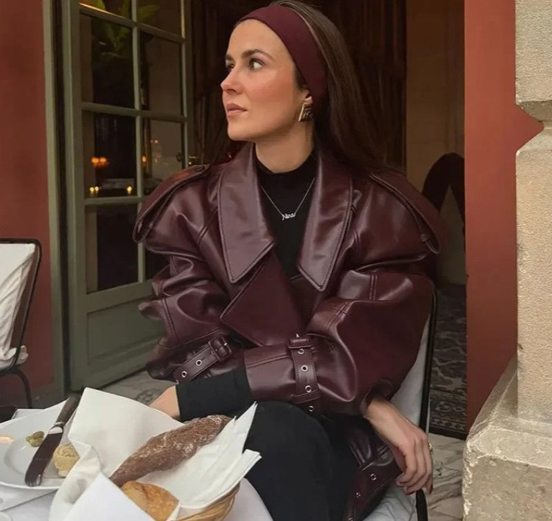 STYLISH LAPEL DESIGN - Featuring a classic lapel, this retro PU leather jacket brings a timeless touch to your wardrobe. The structured collar adds sophistication to the overall look, perfect for both casual and edgy styles.