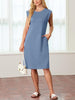 This unique midi dress has a triangle patch at the underarm for modesty without sleeves. The side slit hem accentuates your curves, making you look charming. Convenient side pockets for hands-free movement.