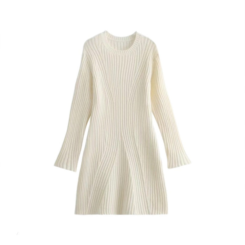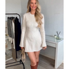 Package Includes: 1* Solid Color Round Neck Knit Long Sleeve Mini Dress