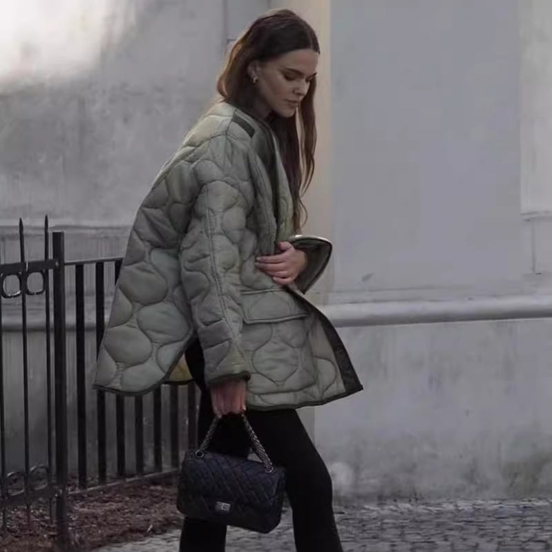 Package Includes: 1*Thick Diamond Pattern Curved Hem Jacket