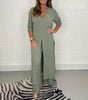 ā VERSATILE STYLE: This two-piece set is perfect for a variety of casual occasions, from a day out with friends to a weekend brunch. A long shirt adds an element of sophistication, while wide-leg pants offer a loose and comfortable fit.