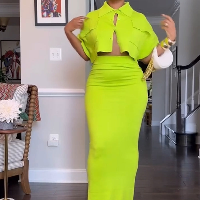 Package Includes: 1× Women's Crop Top Maxi Skirt 2-Piece Set