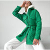 ADJUSTABLE BELTED WAIST: The belt cinches the waist for a flattering silhouette, not only enhancing shape but also providing extra warmth by keeping the jacket snugly in place.